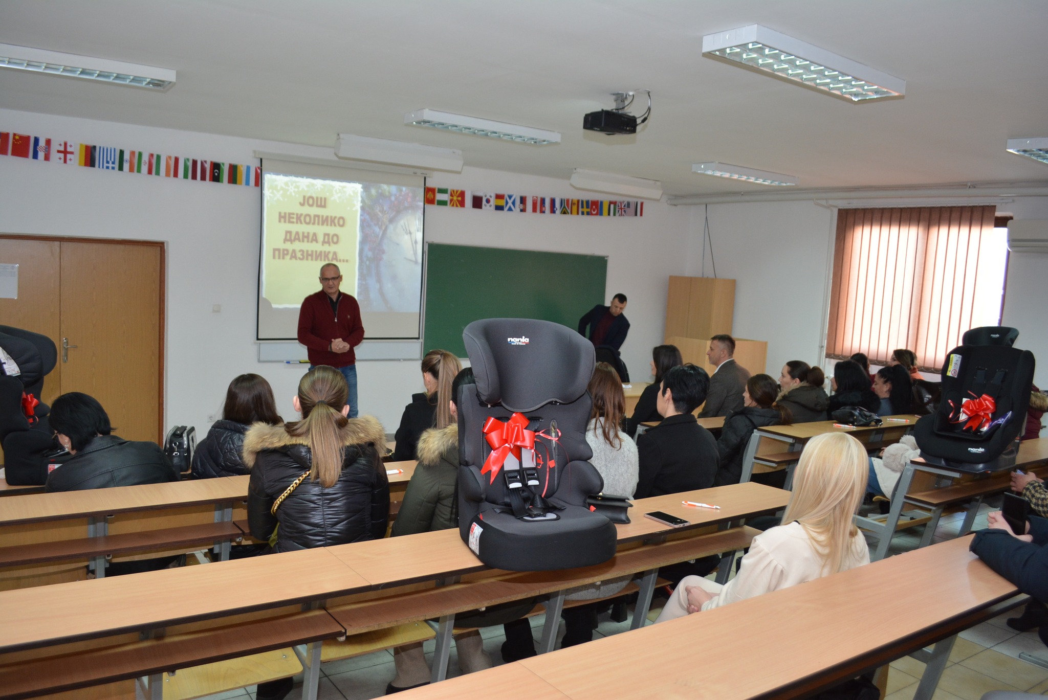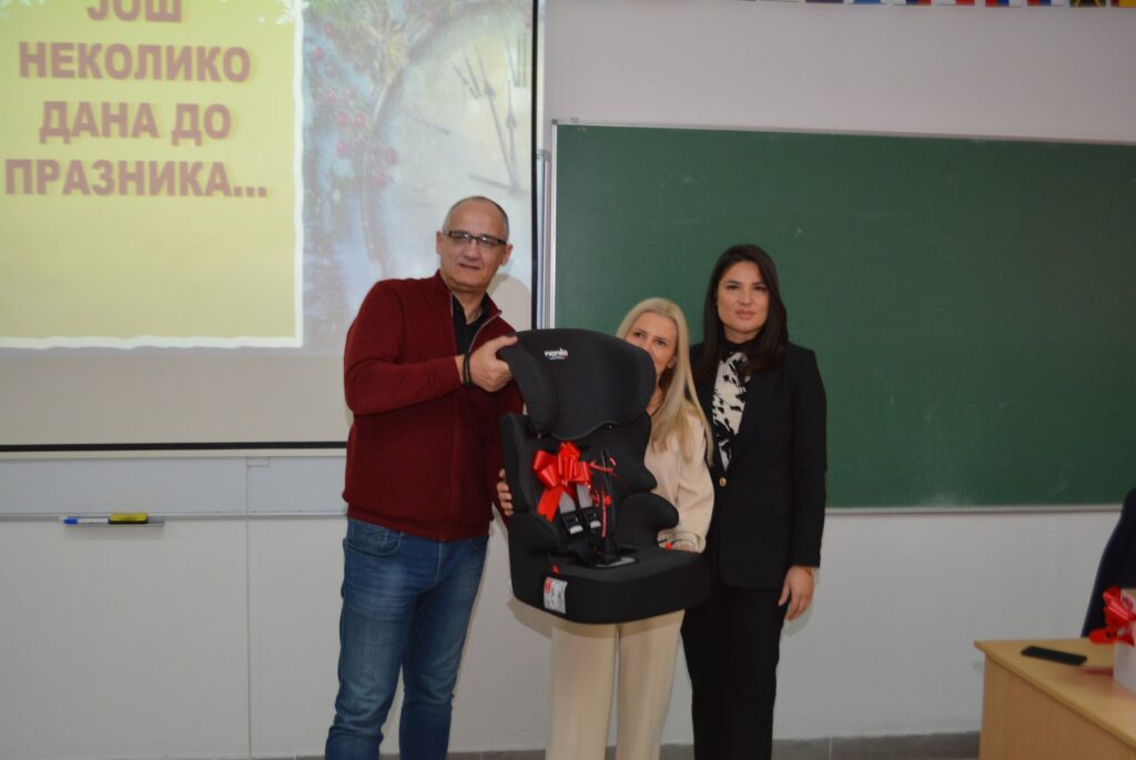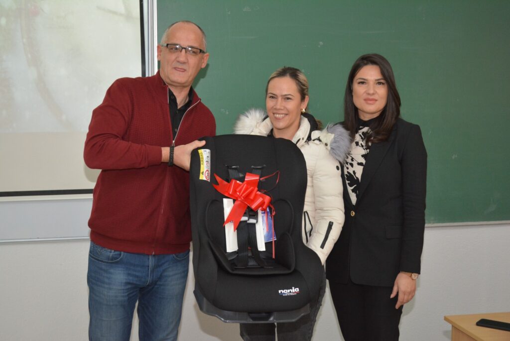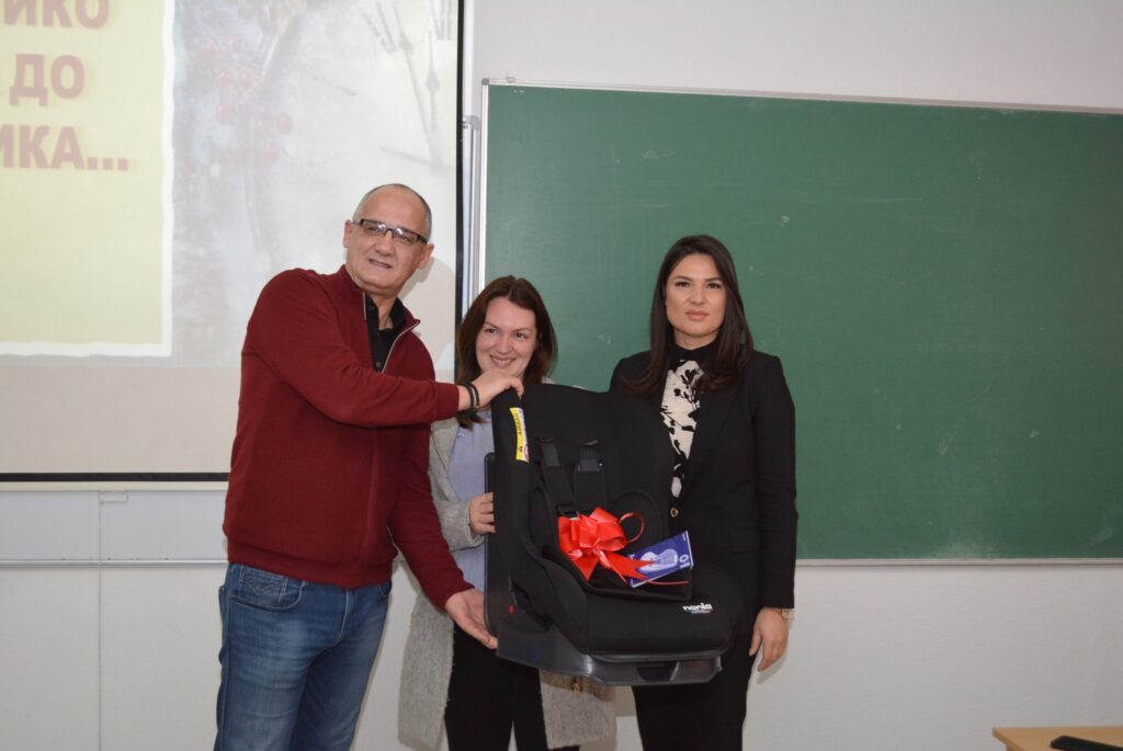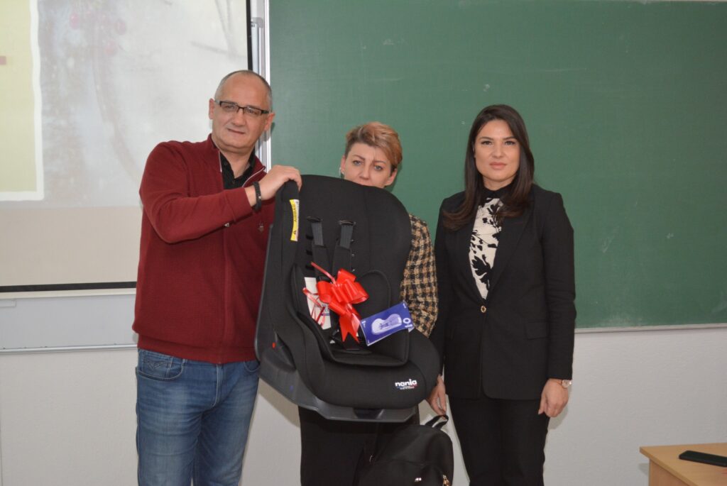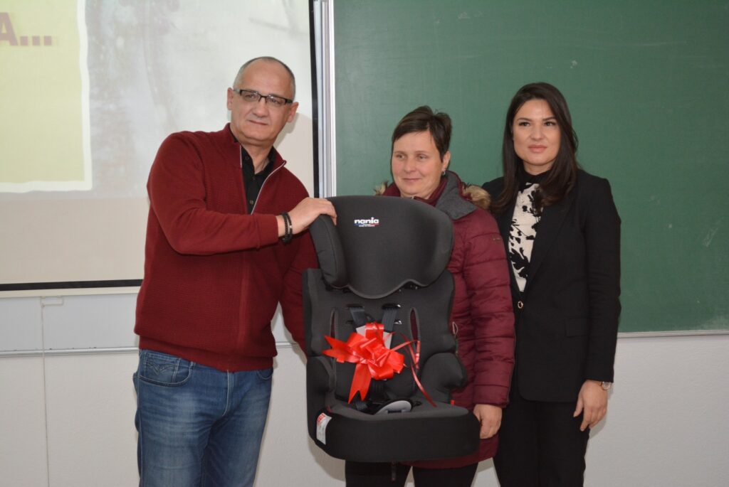 Nakon predavanja organizovana je nagradna igra u kojoj je dodijeljeno devet auto sjedalica. Auto sjedalice su obezbijeđene kao donacija Agencije za bezbjednost saobraćaja, čime je još jednom potvrđena važnost zajedničkog djelovanja institucija u unapređenju saobraćajne bezbjednosti.